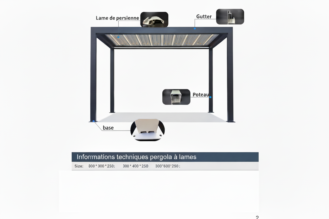 Pergola Bioclimatique 10’ x 13’ – Lames orientables